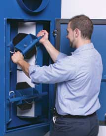 維護(hù)方便簡單Torit PowerCore? TG過濾元件拆裝容易,只需要打開檢修門,不需要任何工具, 擰開旋轉(zhuǎn)式鎖扣,一個人就能輕松取出過濾元件,完成更換。PowerCore?過濾元件重量輕,即使在最終更換時,一般也不會超過22.7kg (50磅), 符合美國OSHA職業(yè)安全與健康管理局規(guī)定的人力提舉限值。